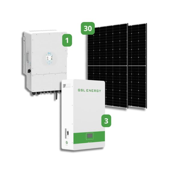 Kit fornitura completa per impianto fotovoltaico ibrido trifase DEYE da 13,8 kW + batteria GSL da 30,72 kWh